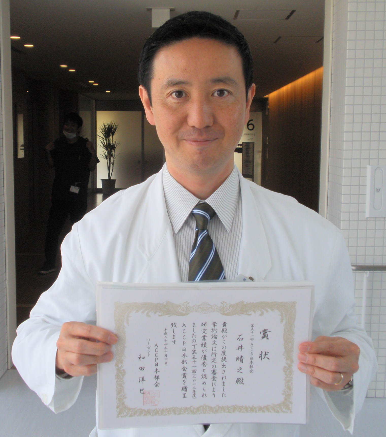 10月6日(土)に開催されました第104回ACCP日本部会定期教育講演会において、ACCP日本部会賞を医学部第一内科学教室の石井晴之講師が受賞しました。