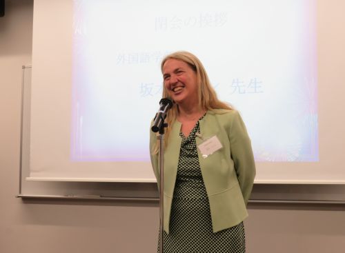 最後に坂本ロビン外国語学部長の挨拶を以て閉会となりました。坂本ロビン外国語学部長は、準備に協力をした学生に対する労いの言葉と秋学期に行なわれる国際交流の集いについて是非楽しみにしておいてほしいと述べました。