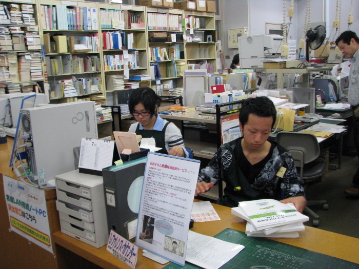 7月20日・23日・24日の3日間に都立八王子北高等学校から2年生2名を受け入れ、図書館の書架整頓や雑誌の配架業務、PCを活用したポスター制作、健康診断の受付業務に取組みました。