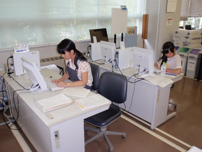 7月26日〜28日には都立青梅総合高等学校から2年生2名を受け入れ、PC作業による就職関連企業情報のデータ整理、オープンキャンパスの準備と受付業務に取組みました。