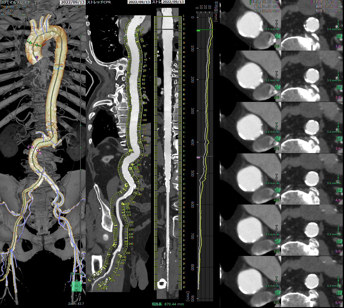 また、AI(Artificial Intelligence)を用いた画像再構成法やDual energy撮影など最新技術を用いた撮影を行っています。装置の特徴を活かして検査を行い、得られた画像から様々な断面や3D画像を作成、画像解析を行い、より詳細な情報提供を行えるように努めています。