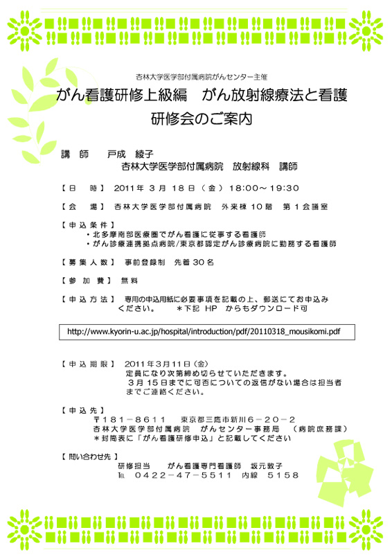 病院・診療科について<がん看護研修上級編> がん放射線療法と看護研修会(看護師の皆様へ)