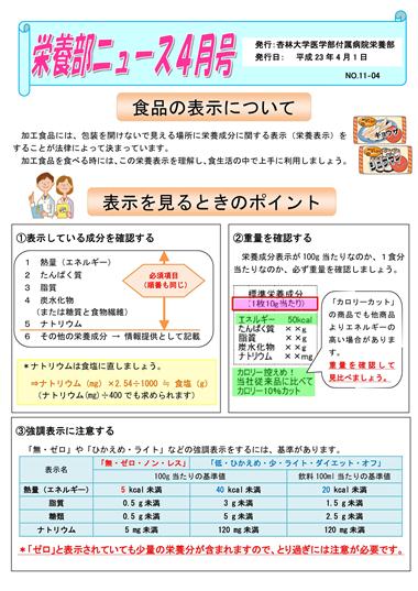 病院・診療科について「栄養部ニュース4月号」を発行しました