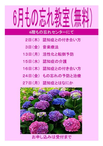 病院・診療科について6月の「もの忘れ教室」のご案内