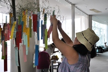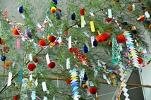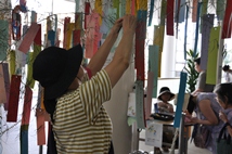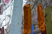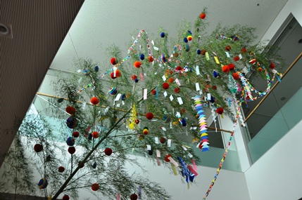 病院・診療科について外来棟1階に七夕飾り 作成日時 2011年07月04日 杏林大学医学部付属病院では、毎年7月7日の七夕に合わせ笹飾りを外来棟1階に設置しています。 今年も、患者サービス室が中心となり準備を行い、彩り鮮やかな飾りを付けた笹竹が7月1日から置かれており、外来棟に明るさを差し込んでいます。笹飾りの下には短冊が用意されており、患者さんやお見舞いの方々には願い事をご記入いただけます。 笹飾りは7月7日まで設置されています。