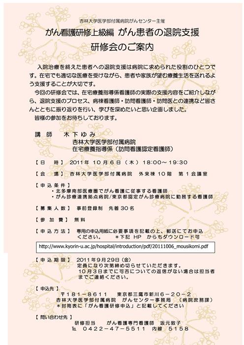 病院・診療科について【がん看護研修上級編】がん患者の退院支援研修会<看護師の皆様へ>