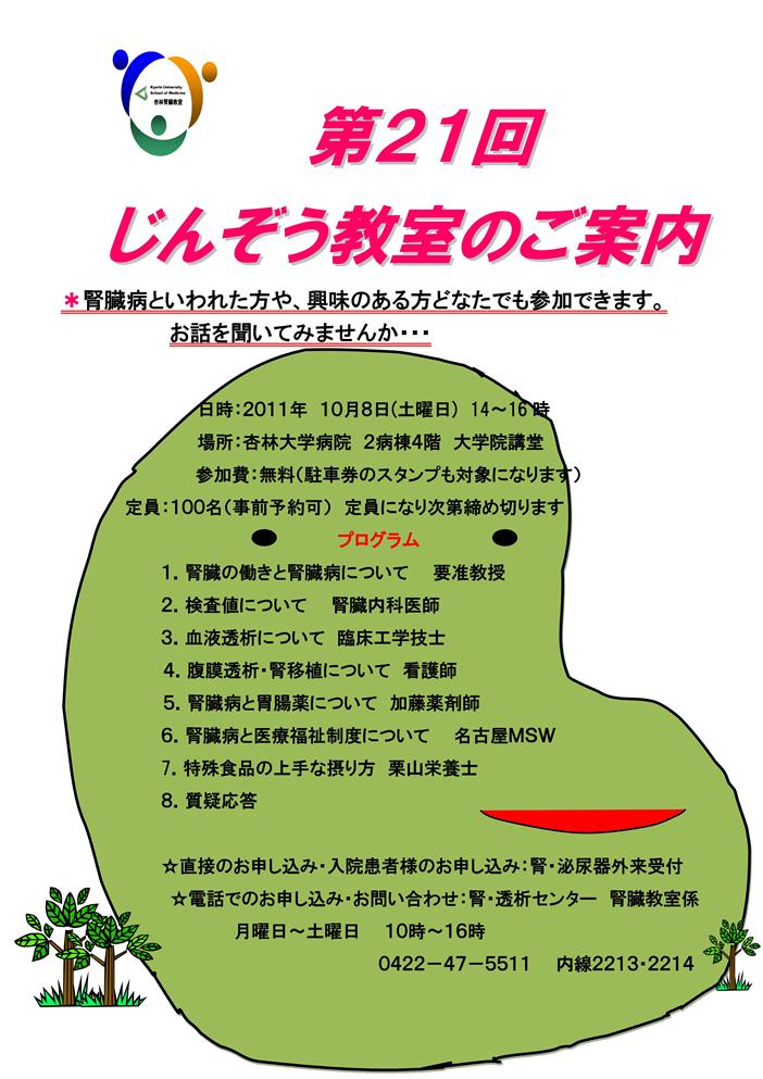 病院・診療科について第21回 じんぞう教室のご案内<10月8日(土)開催>