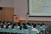 修学旅行初日にあたる当日は山形新幹線で東京に移動し国会議事堂を見学、昼食をとった後バスで移動で午後1時半頃当院に到着しました。はじめに生徒たちは大学院講堂に集まり、高度救命救急センターの小泉健雄講師より救命に関する講話を受けました。小泉講師は講話の中で、救命救急治療は設備・診療といったことに加えチームワークがとても大切であることをわかり易く説明し、生徒たちは熱心に耳を傾けていました。