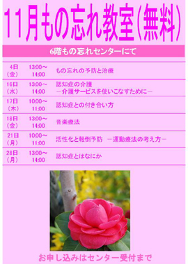 病院・診療科について11月の「もの忘れ教室」のご案内
