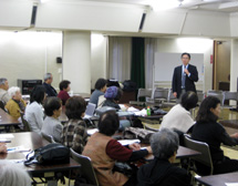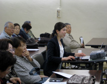 講演では、脳や身体の病気のために記憶・判断力などの障害が起こり、通常の社会生活が送れなくなった状態を認知症といい、はじめのうちは年齢による「もの忘れ」と区別が難しいと説明しました。また、「治る認知症を発見することができる」、「進行を遅らせることができる」などの理由から、認知症は早期発見が大切であると強調され、具体的な早期発見のめやすを解説されました。認知症の予防法として、バランスのとれた食事や適度な運動、友人と一緒に楽しめる趣味を持つことなどが効果的であると紹介しました。講演の合間には、簡単な記憶テストを挟んでみんなで回答したりするなど、趣向を凝らした内容で、参加者は終始リラックスした様子で講演に耳を傾けていました。