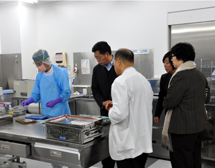 徐副主任は特に日本の医療保険制度に深い関心を寄せていて、国と民間の医療保険の違いや高額療養費制度について齋藤英昭副院長に熱心に質問していました。また、病院の施設見学では、医療器材滅菌室やSICU等を回り、高度な設備や広い空間、それに職員の休憩室が確保され充実していることなどに驚いていました。