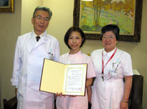 左から甲能病院長、栗山栄養士、佐藤栄養部長