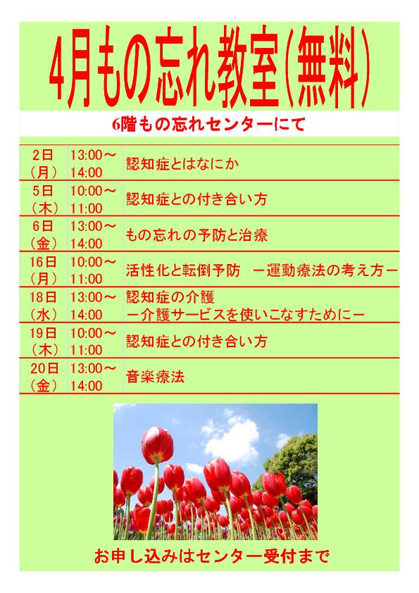 病院・診療科について4月の「もの忘れ教室」のご案内