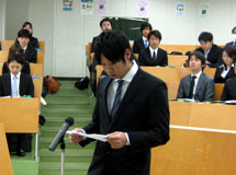 次に研修医代表の相原大和さんより「研修を始めるにあたり、学園の規則等を守り、またご指導くださる先生の指示に従い、専心研修に励むことを誓います」と宣誓がありました。