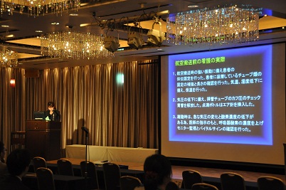 この経験を通じての治療・看護に関して、佐藤看護師は5月31日(木)から6月1日(金)に行われた第38回日本熱傷学会・学術集会で、「ハバロフスク石油精製工場火災事故における熱傷患者の緊急援助派遣と緊急搬送」と題し、航空搬送時の強い振動に対する患者への備えや、離陸時の急な気圧の変化・酸素濃度の低下への対応等、看護の実際について発表を行い、出席者の関心を集めました。