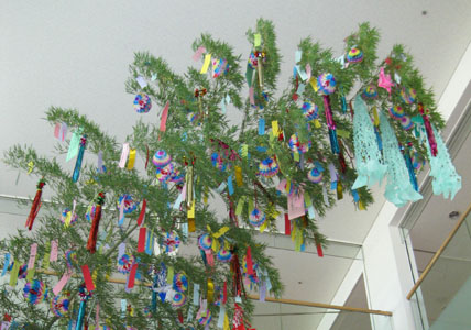 杏林大学医学部付属病院では、毎年7月7日の七夕に合わせ笹飾りを外来棟1階に設置しています。