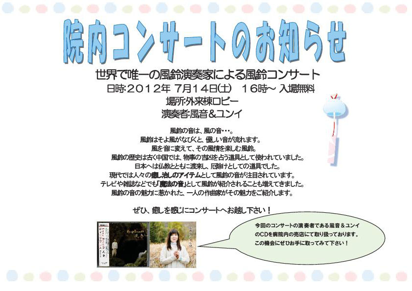 病院・診療科について【院内コンサートのご案内】 7/14 風鈴コンサート