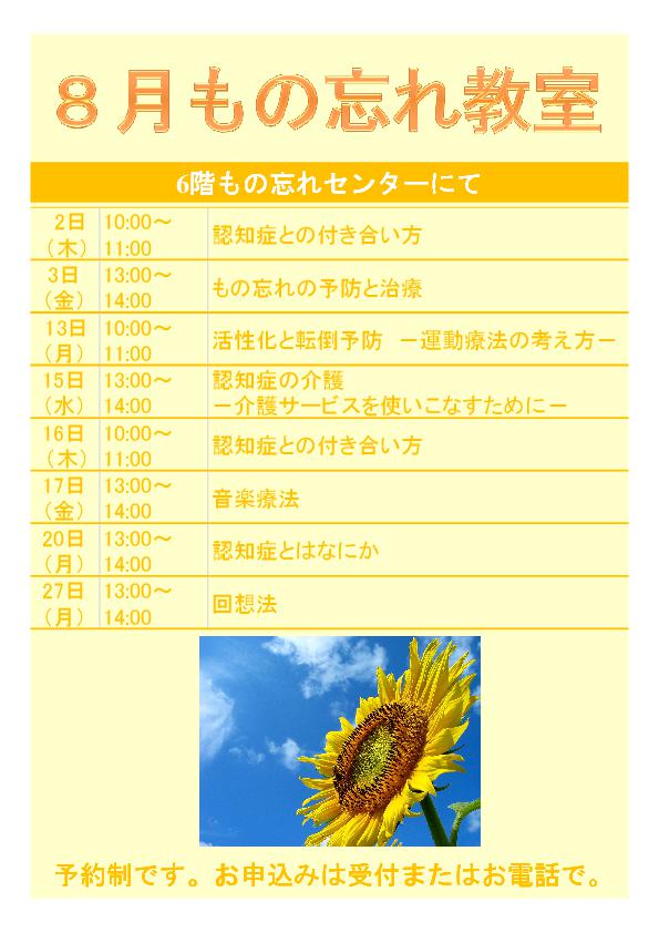 病院・診療科について8月のもの忘れ教室のご案内