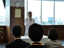 続いて総合研修センターの赤木美智男センター長、看護部の道又元裕部長より「この貴重な研修期間中は、ご自身がそれぞれの現場に戻った時にどのように動けば良いか、意識しながら実習に当たってください」、「集中ケア認定看護師はまだ一施設に一人いるかいないかの人数しかいません。皆さんがこれから認定看護師となった際には、臨床現場のモデルになって欲しいと思います。『この人と一緒に仕事ができてよかった』と思われるような認定看護師になってください」と、それぞれ励ましの挨拶がありました。