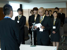 これに対し、研修生を代表して里井陽介さんより「これからの道は、決して平穏ではないきつい道のりになるかもしれません。しかし、決して諦めることなく、長い道のりを確実に歩んでいくことを誓います」と力強い誓いの言葉がありました。