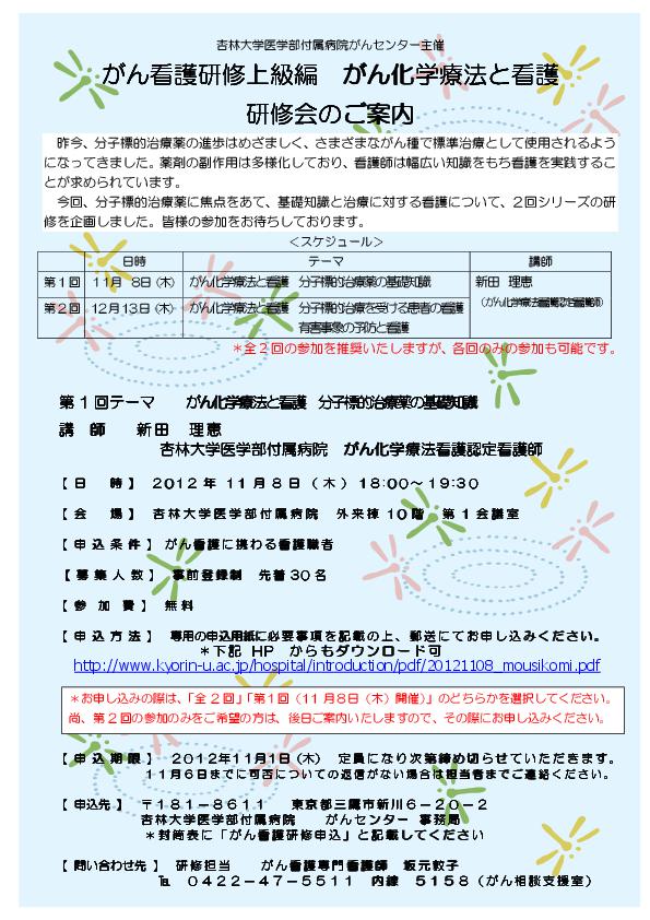 病院・診療科について【がん看護研修上級編】 がん化学療法と看護 研修会のご案内 ≪看護師の皆様へ≫