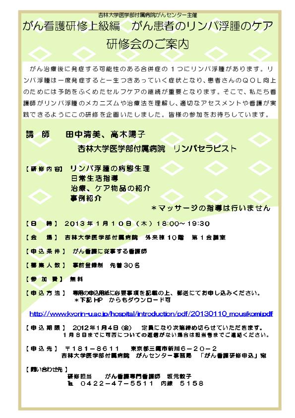 病院・診療科について【がん看護研修上級編】 がん患者のリンパ浮腫のケア研修会のご案内 ≪看護師の皆様へ≫