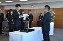 このあと、道又元裕 看護部長から式辞があり、「認定試験を突破して働くあかつきには、周りの看護師さんがあなたの背中を見た時に『私もこんな看護師になりたい』と思ってもらえるような素敵な看護師になって下さい。そして、5月の認定試験には必ず合格してください」と激励の言葉を贈りました。