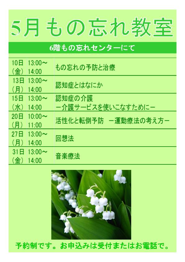 病院・診療科について5月のもの忘れ教室のご案内