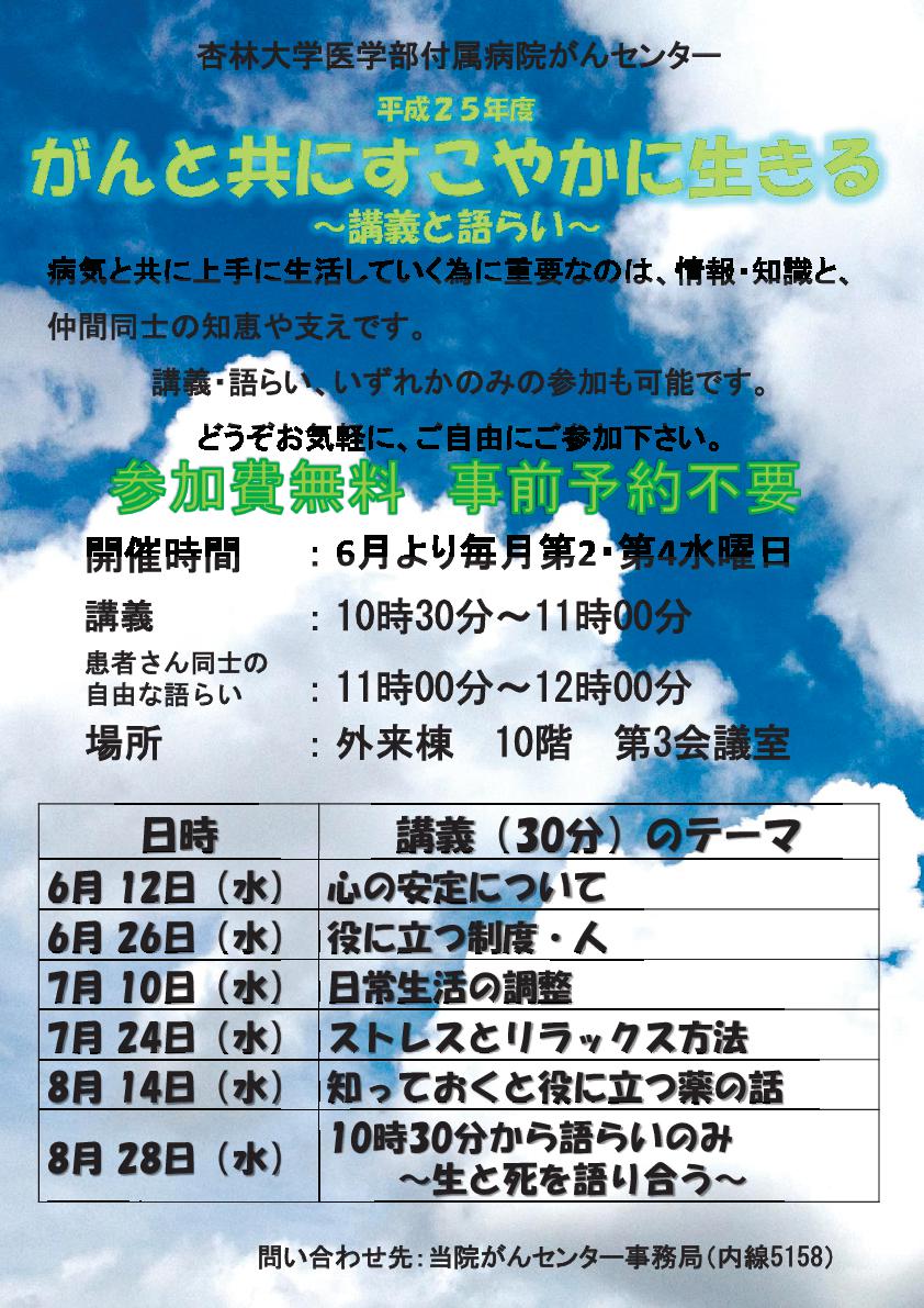 病院・診療科について「がんと共にすこやかに生きる」~講義と語らい~ ≪がんセンター主催≫