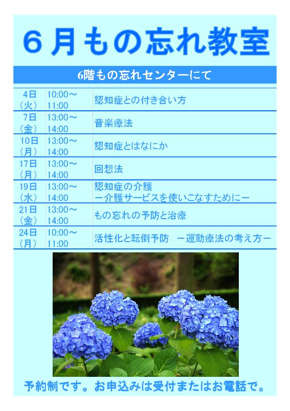 病院・診療科について6月のもの忘れ教室のご案内