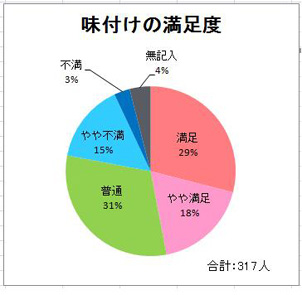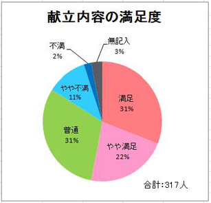 今回の嗜好調査では、献立内容・味付けとも、5割前後の方から「満足」・「やや満足」とご回答をいただきました。