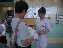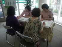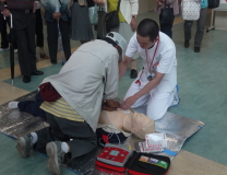 1日目の19日は、来院された患者さんやご家族の方などが次々と足を止め、アロママッサージの施術を受けたり、展示品などの説明を受けるなどしていました。このうち、AEDの使用方法を体験しながら学べるコーナーには大勢の方が集まり、受講者からは「パッドを貼る位置はずれても大丈夫ですか?」「この装置は救急車の中にも置かれているのですか?」など様々な質問が寄せられ、AEDに対する関心の高さが伺えました。