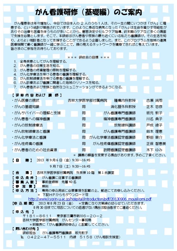 病院・診療科についてがん看護研修(基礎編)のご案内<看護師の皆様へ>