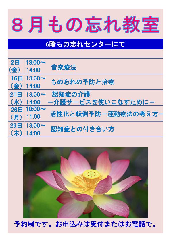 病院・診療科について8月のもの忘れ教室のご案内