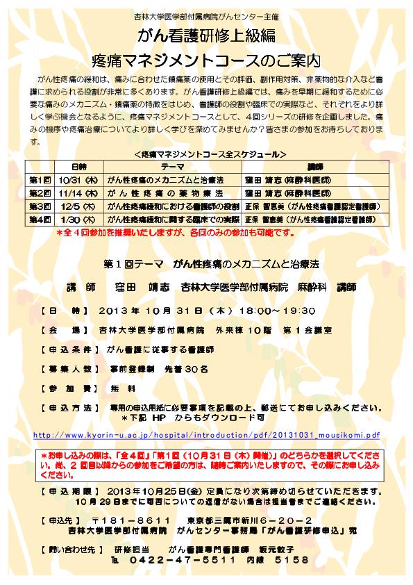 病院・診療科について【がん看護研修上級編】 疼痛マネジメントコースのご案内≪看護師の皆様へ≫