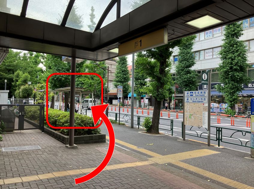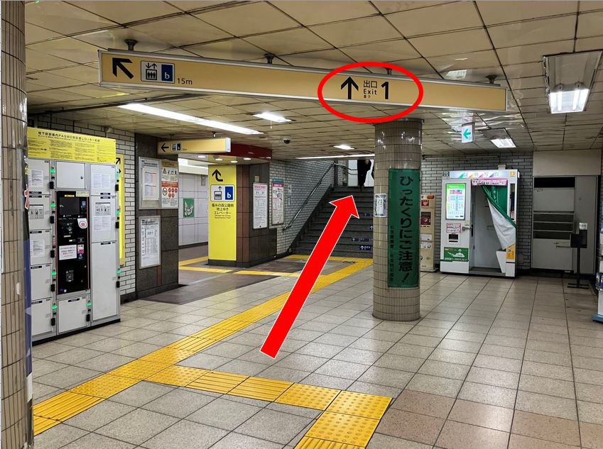 1.改札を出て、出口1から地上に上がってください。