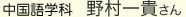千野ゼミナールでは, 二つのテーマについて研究しています。一つ目は中国の文字改革についてです。文字改革というと中国で使用されている漢字を思い浮かべるかもしれませんが,中国の文字革命は漢字だけではなく,発音・語彙・文法も含まれます。1958年に周恩来によって報告された『文字改革の当面の任務』等の文字改革に関する中国語・日本語の資料を読み解きながら,文字改革の内容・目的・背景等について見ていきます。二つ目は中国語と日本語の違いについてです。中国語と日本語は漢字という大きな共通項があるものの,言語類型論から見ると,中国語は孤立語,日本語は膠着語というように異なるグループに分類され,また,中国語と日本語の発想も大きく異なります。中国語と日本語に関する書籍・論文等を読み解きながら、中国語と日本語の文法・表現・発想等に認められる具体的な違いについて考えます。