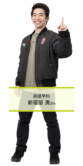 外国語学部では語学だけではなく、その言語が話されている地域の文化や歴史も学ぶことができます。また、留学生や研修生との交流を通して異文化に直接触れる機会もたくさんあります。おかげで入学前にはなかった視点からものごとを考えることができるようになりました。新しい角度からものごとを見てみたい、あっと驚く意外な体験をしてみたいという人にはおススメです。