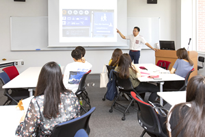 ゼミナールでは、<ことば>についてじっくり考えています。わたしたちは、普段は自分の話している<ことば>について、あまり意識することはありません。<ことば>にはいろいろな、役割や働きがあります。そのなかでも、わたしたちの<ことば>は人を励ます、どきどきさせる、だます、笑わせる、悲しませるという様々な働きがあるという点に注目してみると、あらたな発見や疑問が生まれてきます。こうした、発見や、疑問はみんなでディスカッションをしながら考えてみると、今まで考えたことのなかったことがらに出会います。最終的には、人の<こころ>を動かす<ことば>について、身近な例を取り上げながら言語学的に考え、それを卒業論文にまとめていきます。