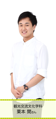 私が本ゼミナールを志望した理由は、「景観」というこれまでの授業ではあまり触れられてこなかった分野を学んでみたいと思ったからです。今まで国内外の観光の仕組み、地理、地域活動など多くの分野を様々な授業で学んできました。しかし、「景観」という分野に注目した授業は数多くはありませんでした。3年生になると、就職や将来のために専門的な分野の勉学に専念する人が多くなります。しかし、私は新しい分野を学んで将来の選択肢や視野を広げてみたいと考えました。また、最近映画やアニメなどの聖地巡礼にも興味があったので、これらに何か繋がることがある思い本ゼミナールを選びました。(栗本)