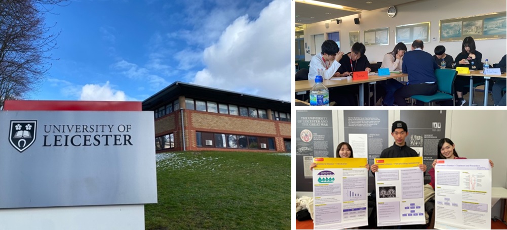 本学はイギリスのレスター大学と協定校になっており、本学の1年生から4年生を対象とした医学英語セミナーが毎年春季休暇中にレスター大学で3週間にわたって開催されます。