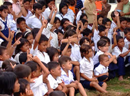最初に飛行機からカンボジアの風景を見た時はやはり同じ印象でした。舗装された道はほとんどなく、あたり一面 が泥に覆われ、川沿いでは洪水の影響で多くの家屋が水没しており、想像通りの悲惨な国なのだと思いました。しかし、その思い込みが間違いだと気付くのにそ う時間はかかりませんでした。首都プノンペンでは物資が溢れ、美しい町並みの中で多くの車やバイクが行きかっており、それは典型的なアジアの都市の風景で した。カンボジアの人々の活き活きとした目を見たとき、そこには希望の光を見い出すことができました。農村を訪問した際も、日本人が失いつつある家族や共 同体の強い繋がりを感じ、時間を忘れさせるような平和でのどかな田園風景からは、とても十数年前まで内戦をしていた国だとは思えませんでした。カンボジア の人々からは、アジア人共通とも言える、微笑みの奥に秘めた気骨のようなものを感じ、国全体が過去の悲劇を克服し、着実に未来へと歩んでいるように感じま した。