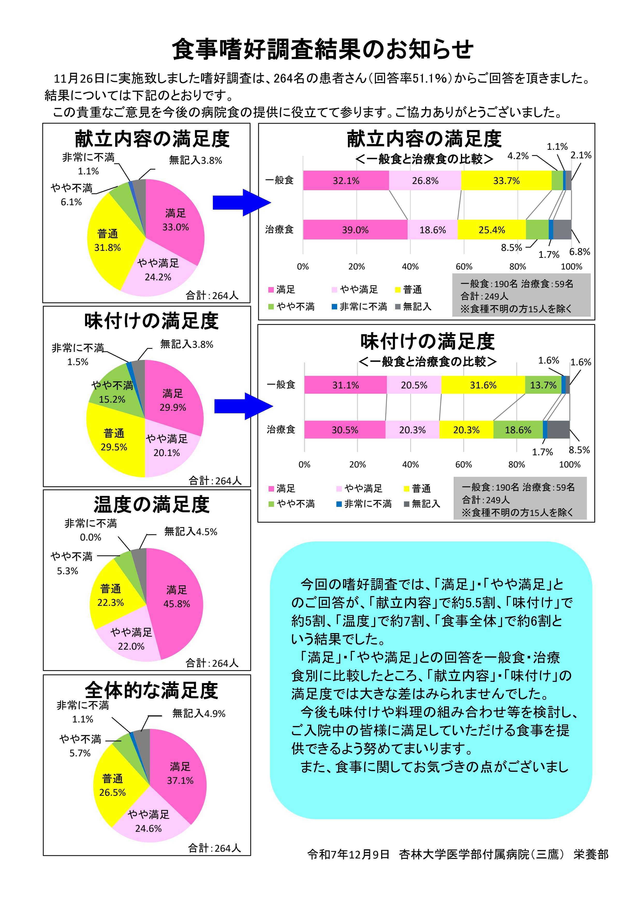 その結果をもとに、よりよい患者食のご提供に日々努めています。
