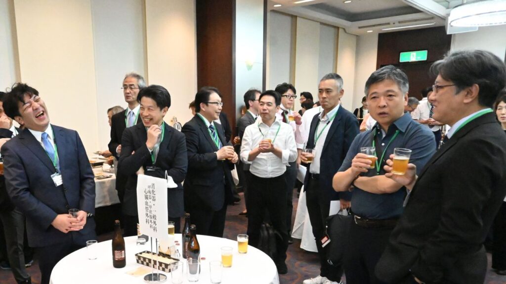 また、杉並区医師会会長の八木美徳様、中野区医師会会長代理の渡邉仁様、世田谷区医師会副会長の太田雅也様からも心温まるご挨拶をいただきました。その後、前杉並区医師会会長の稲葉貴子様による乾杯のご発声で情報交換会が始まり、杉並病院の各診療科長や医学部付属病院からも近藤晴彦病院長をはじめ、地域医療連携に関係する医師が参加し、地域の医療機関の皆様と笑顔あふれる活発な意見交換が行われました。