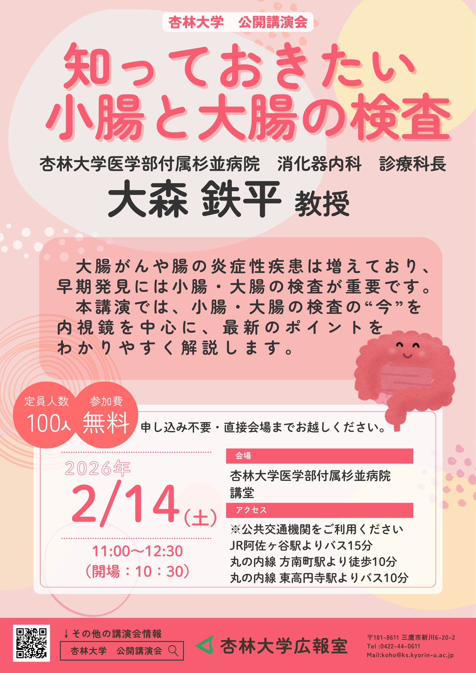 2月14日(土)公開講演会「知っておきたい小腸と大腸の検査」のご案内