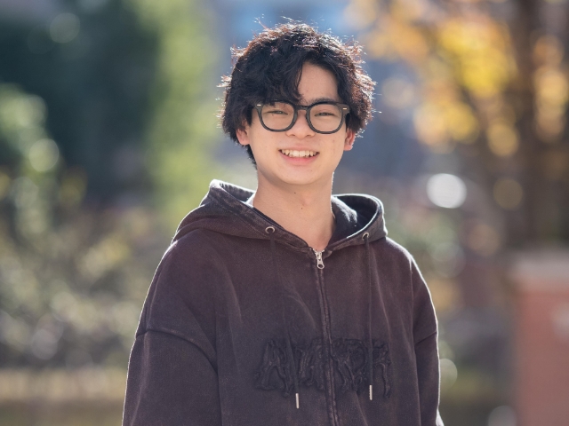 私が英語に関心を持つようになったのは、中学生の頃です。きっかけは、ある教育系YouTuberの動画でした。現地で使われている「生きた英語」に触れ、それまでの学校教育とは違う語学の世界に夢中になったのです。その後、英語アプリや洋楽で知識を深め、学びの楽しさを実感しました。「語学を専門的に学びたい」という思いから、卒業後の進路は、自宅から遠い都内の外国語系学部を選択。杏林大学のオープンキャンパスで出会った坂本ロビン先生の明るい人柄と模擬授業に心を動かされ、進学を決めました。ニュースを題材にした模擬授業は当時の私にとって新鮮で、「大学では実践的な英語に挑戦しよう!」と胸が高鳴ったのを覚えています。