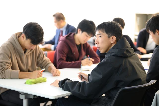 GCP(Global Career Program)は、グローバルに活躍するビジネスパーソンを育成するために、総合政策学部が導入したキャリア育成プログラムです。徹底した教育による英語漬けの時間を過ごしながら、「英語で考え、表現し、伝える力」を養います。総合政策学部の中から選抜された学生が受講できます。