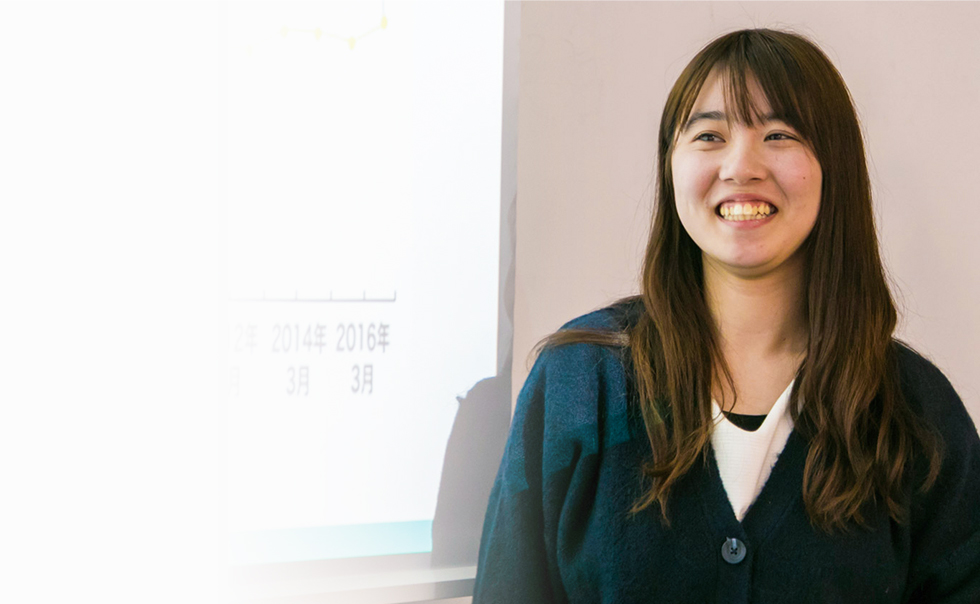 グローバル社会で活躍できるようになるためにと選んだのがGCPでした。授業では英語の運用能力だけでなく、鍛えた英語力を使ってプレゼンテーションを行ったり、ビジネススキルを学んだりしています。決して英語が得意だったわけではありませんが、GCPでの学びを通していつの間にか英語への抵抗感は薄れ、海外の人たちとコミュニケーションを取りたい、もっと世界のことを知りたいと意欲は高まる一方です。