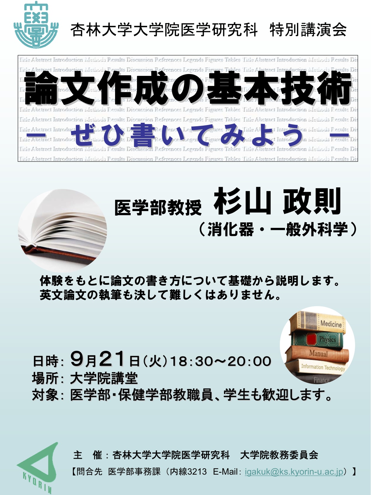 特別講演会「論文作成の基本技術」開催のお知らせ