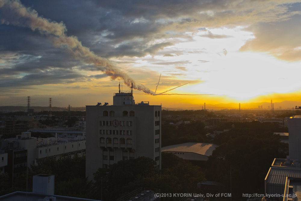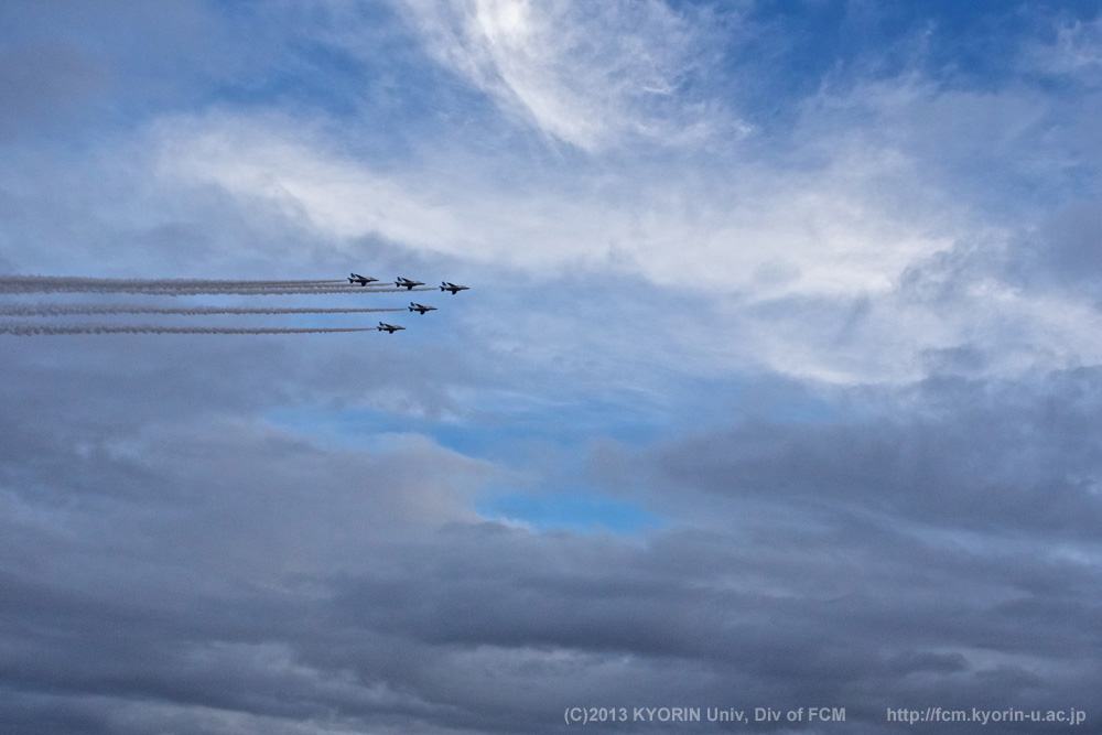 平成25年9月28日(土)に第68回国民体育大会開会式が杏林大学三鷹キャンパスから程近い調布市の味の素スタジアムで挙行され、航空自衛隊 第4航空団飛行群第11飛行隊ブルーインパルスによる展示飛行が行われました。